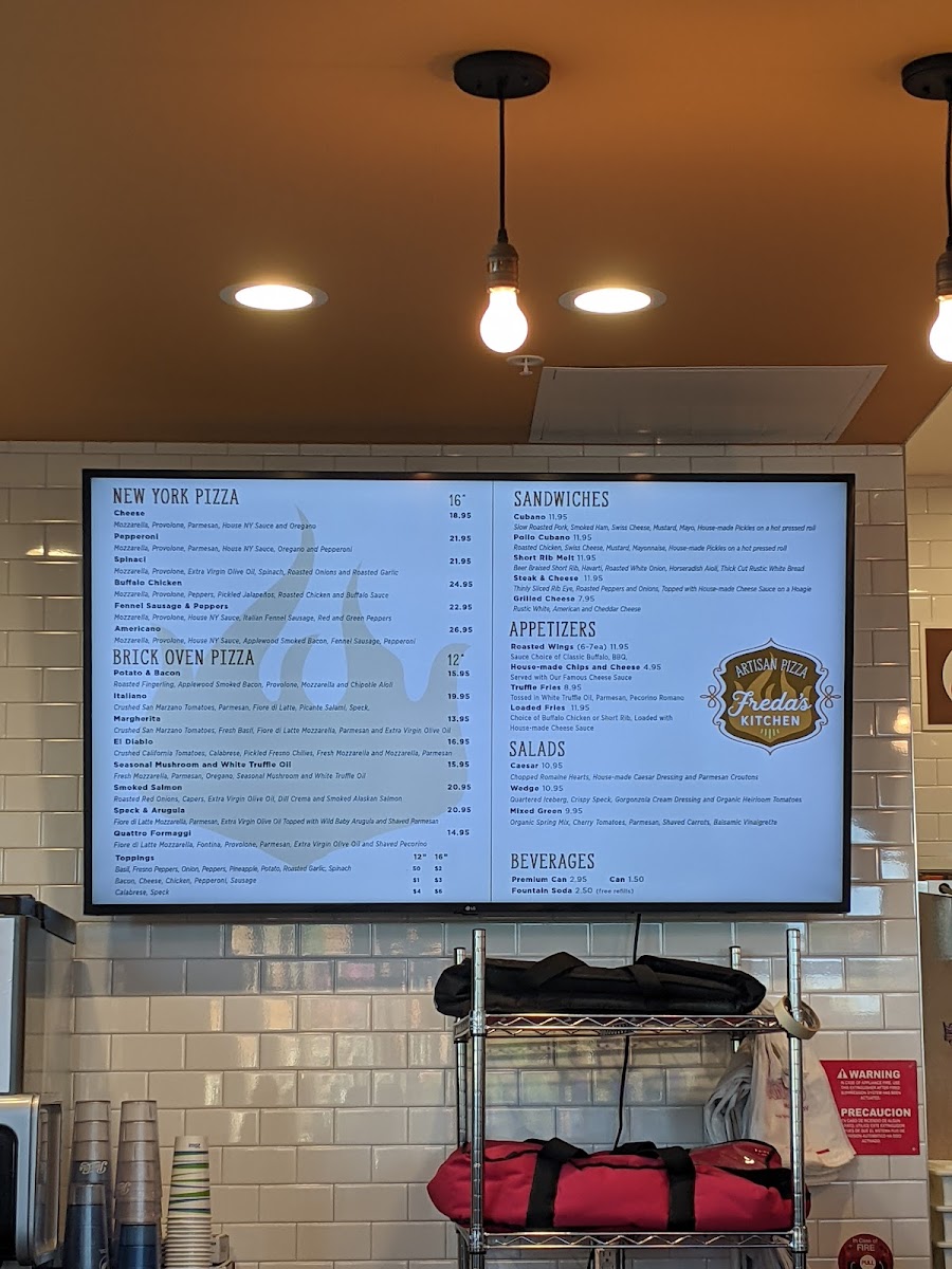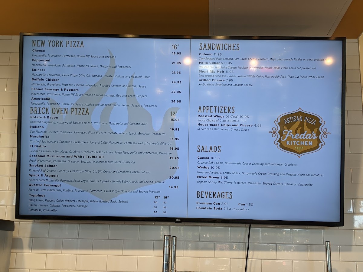 If you’re looking for a spot that serves up mouthwatering pizzas and a cozy atmosphere, look no further than Freda's Pizza Menu at 2024 Ventura Blvd #112 in Camarillo, CA. Whether you're stopping by for a quick bite or planning a casual meal with friends, their menu offers something for everyone. You’ll find a variety of classic and unique pizza options, all made with fresh ingredients and a perfect crust that hits just right. The toppings? You can’t go wrong with anything from the traditional favorites like pepperoni and margherita to more adventurous choices, all made to order. And it’s not just pizza; Freda's also serves up delicious sides, refreshing drinks, and satisfying desserts to round out your meal. Whether you're a pizza purist or love trying new combos, the menu is sure to leave you craving more.
